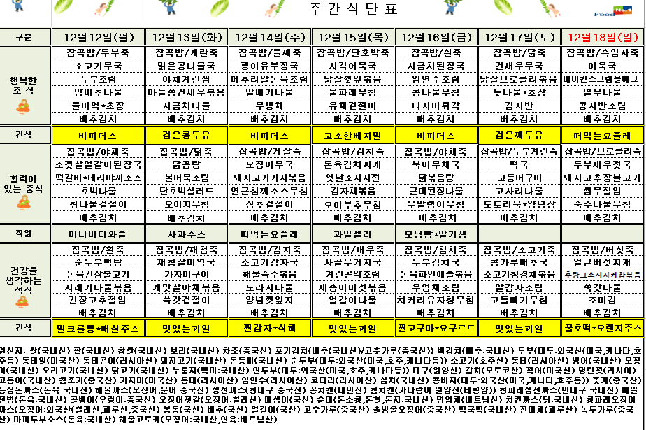 12¿ù 3ÁÖÂ÷ ½Ä´ÜÇ¥(2022.12.12~2022.12.18)