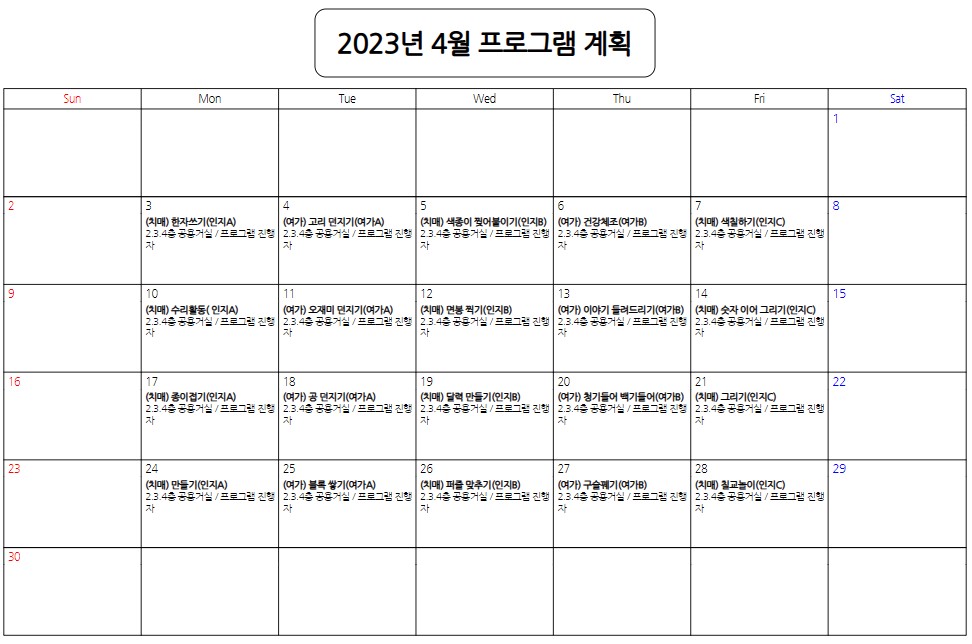 04¿ù ÇÁ·Î±×·¥ °èȹǥ