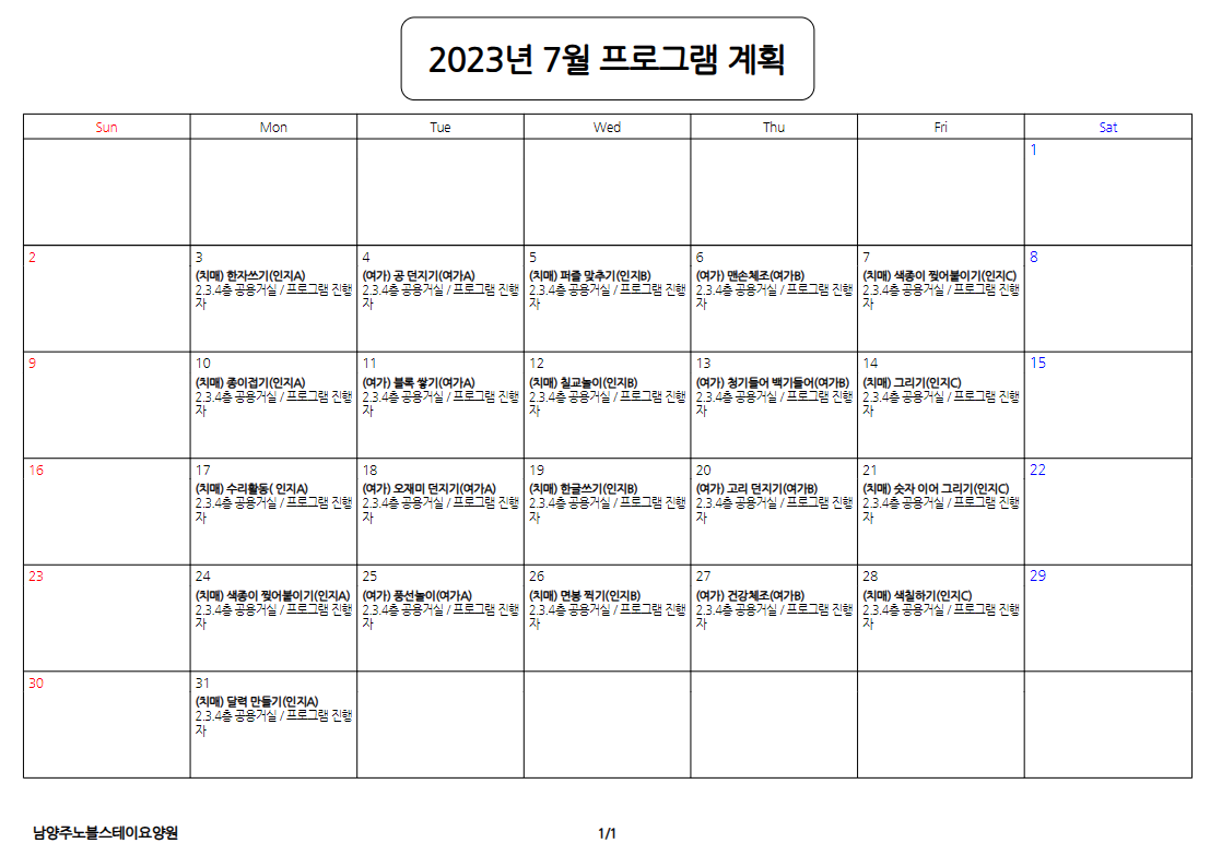 7¿ù ÇÁ·Î±×·¥ °èȹǥÀÔ´Ï´Ù.